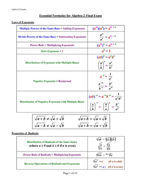 Read Online algebra 2 notes for final Doc